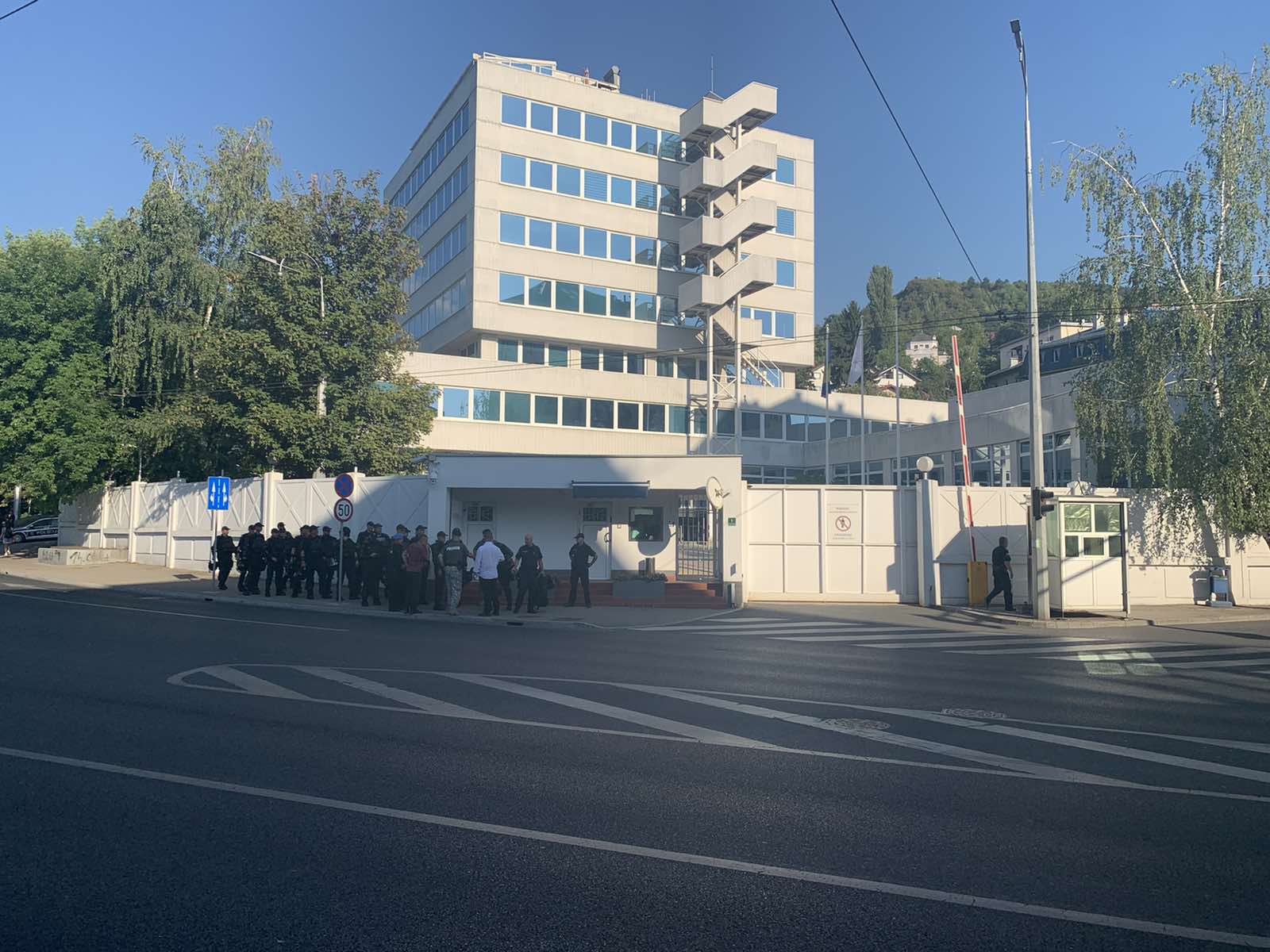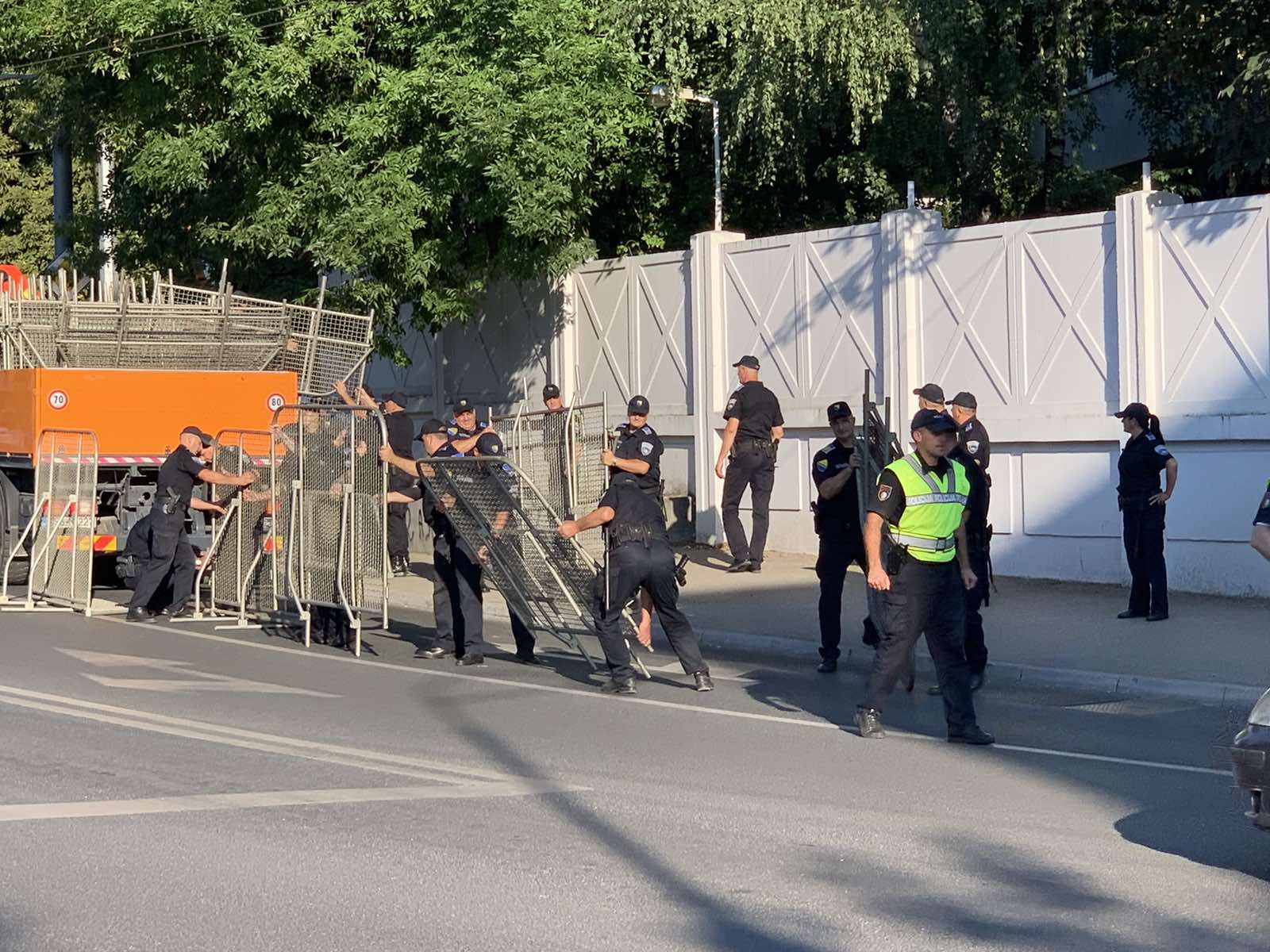 N1 cameras recorded a strong police presence and officers setting up a protective fence in front of the OHR. Traffic has been stopped in the area.