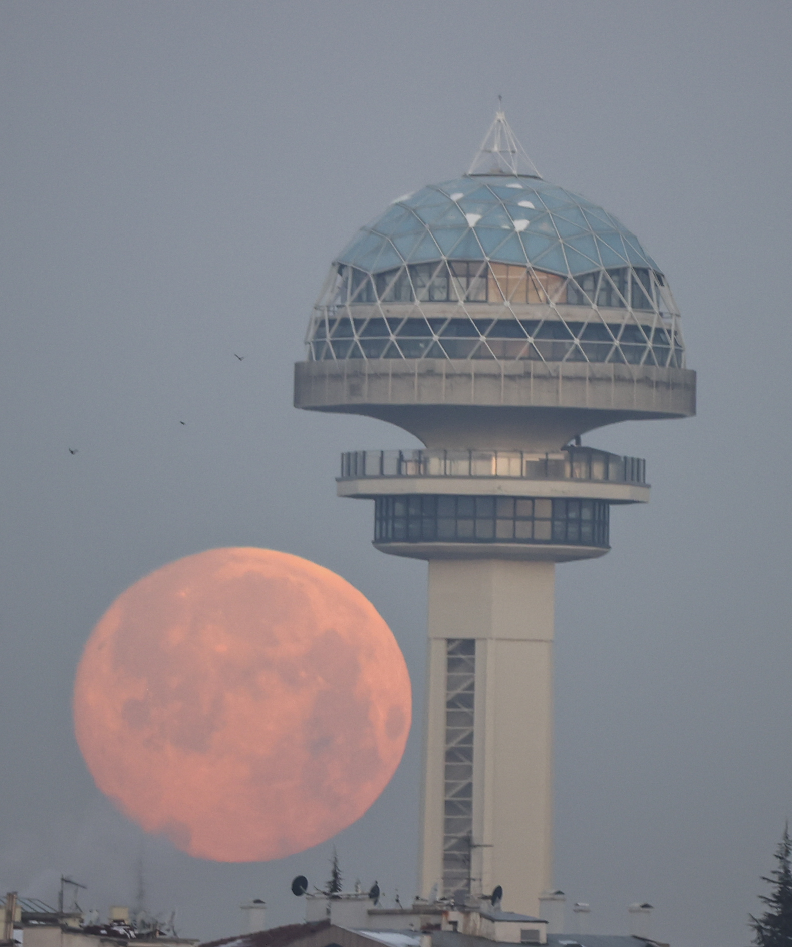 Fotoreporter AA u Ankari je zabilježio pojavu punog mjeseca iznad poznatog tornja Atakule.