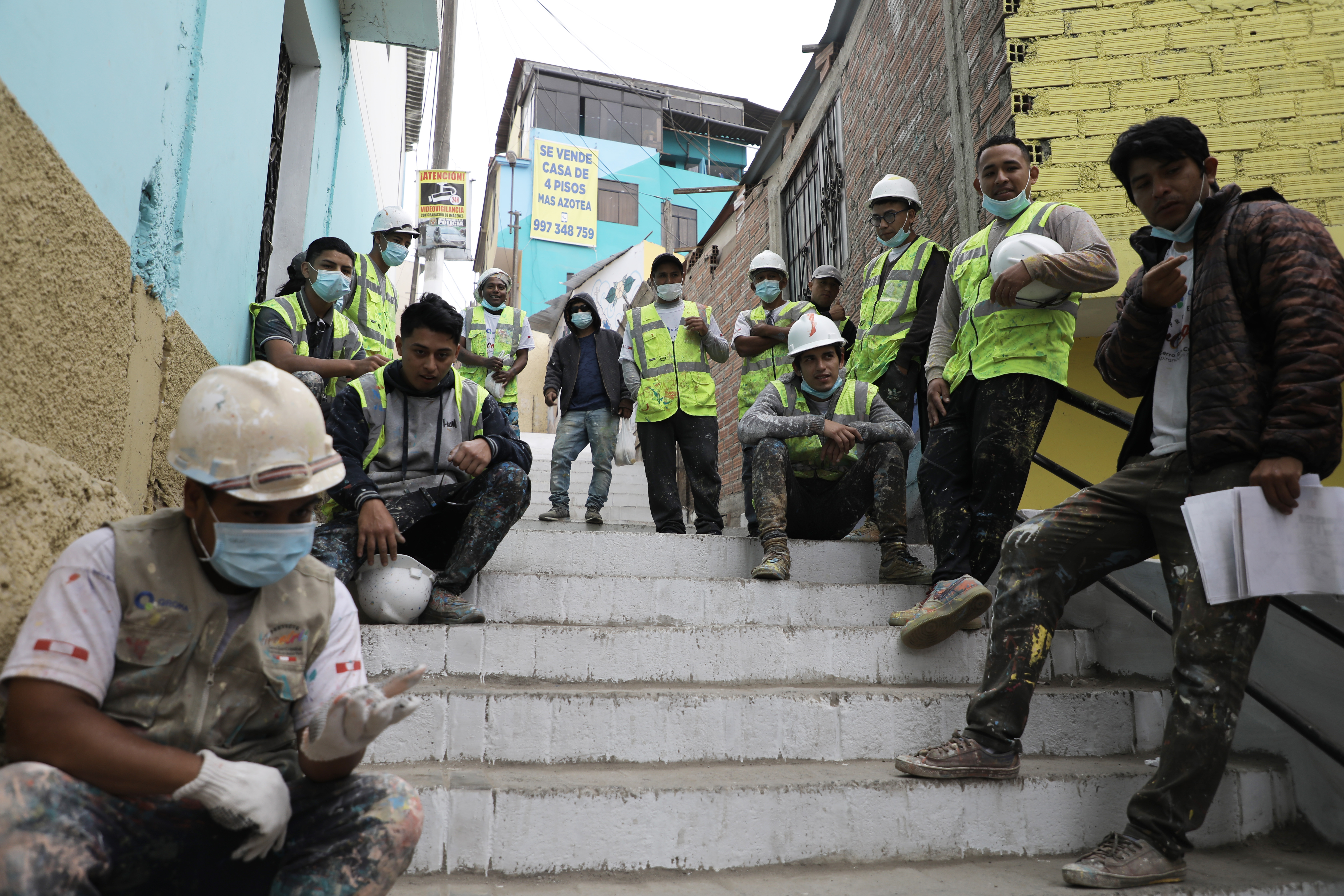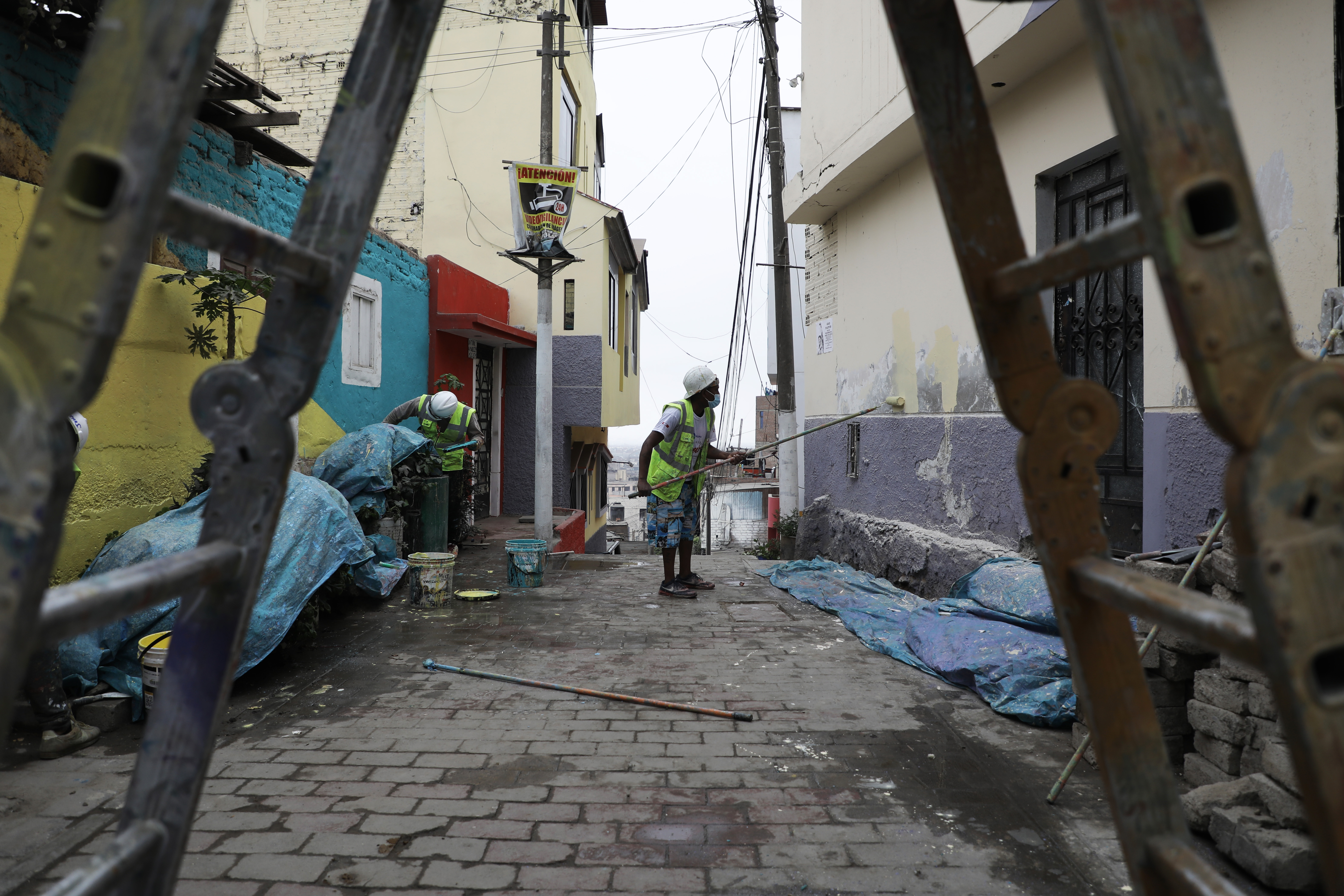 Živahne boje koje oslikavaju muralisti krase mnoge zgrade u naselju Leticia, dok su radnici angažovani oko brušenja stepenica i kamenih zidova.