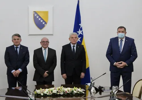 Specijalni izaslanik premijera Velike Britanije za zapadni Balkan Sir Stuart Peach stigao je u Predsjendištvo Bosne i Hercegovine. Dočekala su ga sva tri člana Predsjedništva BiH, a Dodik je poštujući epidemiološke mjere, držao i distancu od Šefka Džaferovića i predsjedavajućeg Željka Komšića. Također, držao je ruku u džepu dok se pozdravljaos gostom.