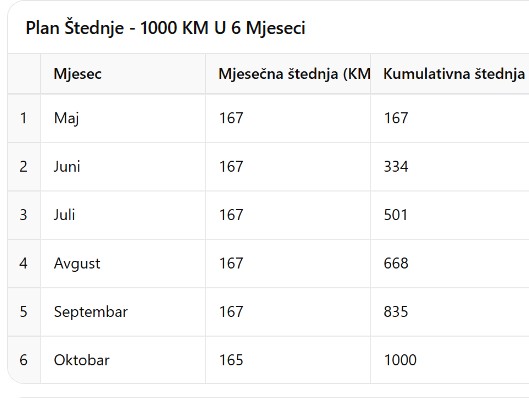 Da biste uštedjeli 1.000 KM u šest mjeseci, potrebno je mjesečno izdvojiti oko 167 KM, što je oko 11% prosječne neto plate. Dnevno, to je oko 5,5 KM – iznos koji se može uštedjeti promjenom nekih svakodnevnih navika.