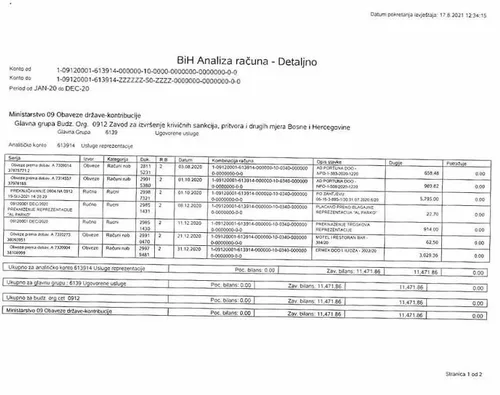 Agencija za forenzička ispitivanja je za eksternu reprezentaciju potrošila 5.021,22 KM od čega 3.809,85 KM za ugostiteljske usluge tokom 45 poslovna sastanka direktora u BiH.