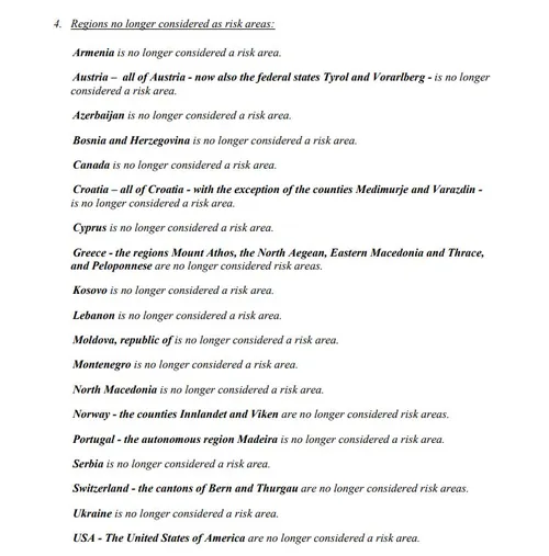 Na ovoj listi od danas su i Hrvatska (osim Međumirja i Varaždina), Kosovo, Crna Gora, Sjeverna Makedonija i Srbija iz regije, ali i druge zemlje svijeta poptu Kipra i SAD-a.