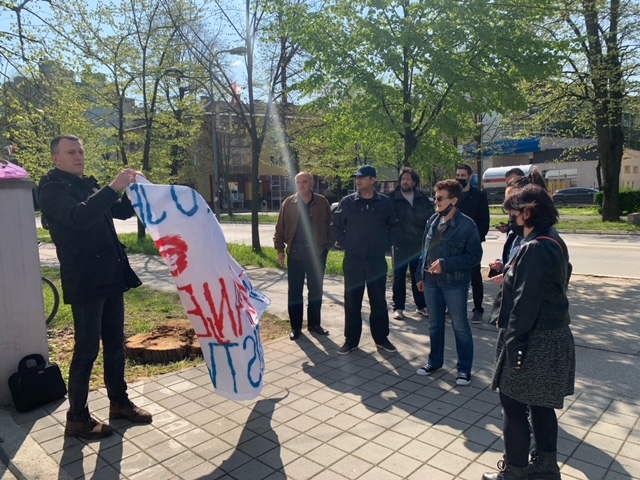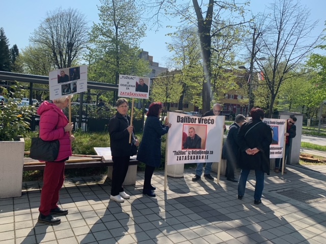 Članovi grupe "Pravda za Davida" okupili su se danas ispred zgrade Osnovnog suda u Banjaluci gdje u 11 časova počinje glavni sudski pretres protiv kriminalističkih tehničara Policijske uprave Banjaluka.