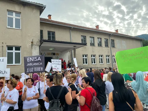 U bosanskohercegovačkom gradu Jablanici počeo je skup građana koji protestuju u znak podrške radnici Enisi Klepo koju je, kako je navela, pretukao vlasnik hotela Jablanica jer je tražila platu.