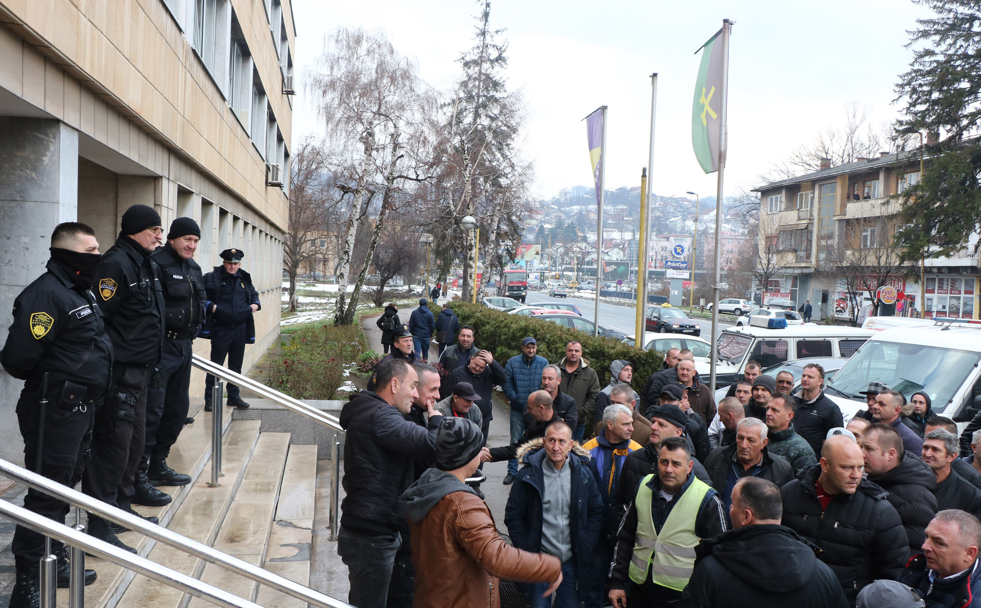 Prevoznicima je pred Direkcijom Rudnika uglja "Kreka" rečeno kako direktor nije u kancelariji, što je izazvalo ogorčenje, jer su protesti najavljeni prije osam dana.