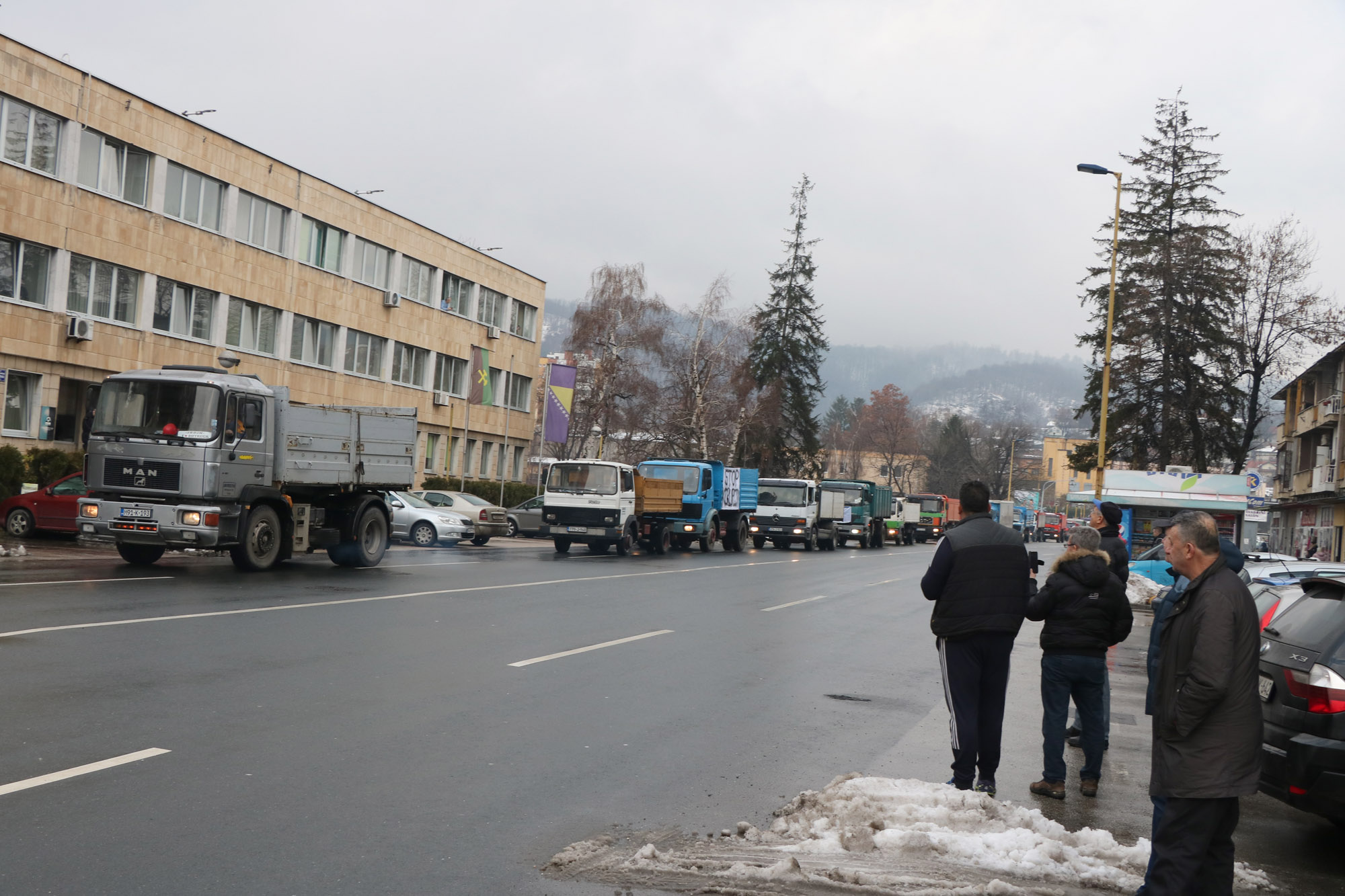 Prevoznici su proteste započeli kod Rudnika uglja "Mramor" i kamionima su prošli pored Direkcije Rudnika uglja "Kreka". Nakon što su parkirali kamione, došli su pred Direkciju, ali nisu imali, izuzev službenika policije, nikog s druge strane za eventualni razgovor.