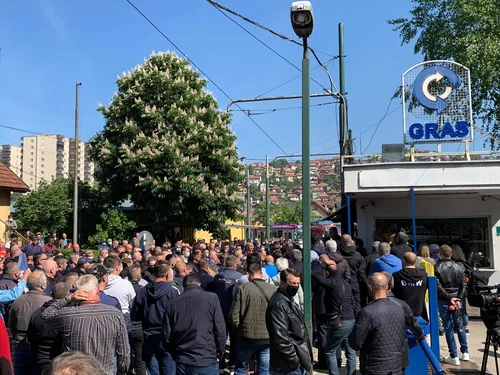 Radnici KJKP GRAS počeli su proteste u krugu preduzeća jutros u Sarajevu. Nezadovoljni su zbog neisplaćenih plata, stanja u preduzeću, uslovima rada. Grupa radnika je započela štrajk glađu u utorak. Jednom od radnika je u međuvremenu i pozlilo.