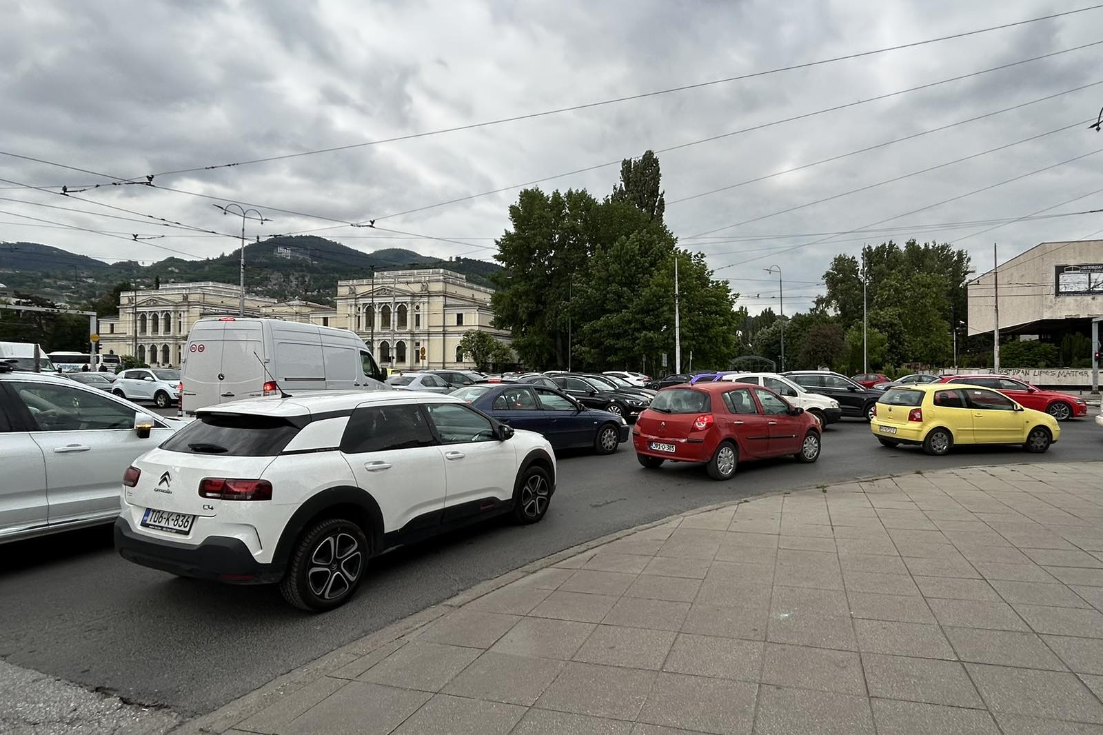 Na fotografijama koje je fotoreporter N1 zabilježio u popodnevnim satima kada se većina ljudi vraća s posla, ali i vjerovatno spremaju na putovanje van grada pred za vikend, jasno se vidi potpuna blokada saobraćaja, pogotovo na Marijin Dvoru na raskrsnici kod zgrade institucija BiH i u blizini tramvajskih stanica u čijoj blizini su vozila stajala gotovo nepomično.