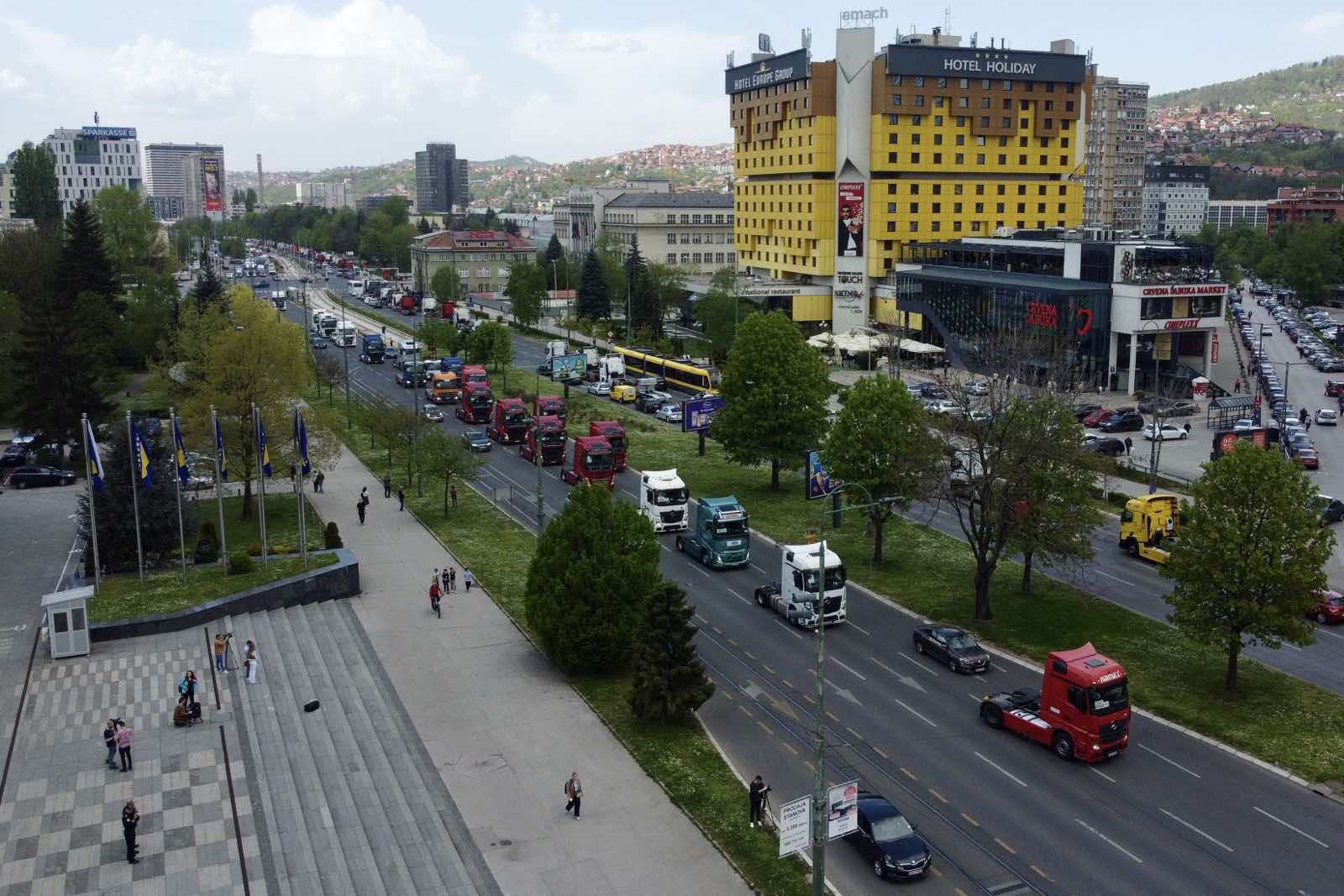 Više od 500 kamiona iz cijele Bosne i Hercegovine danas je prodefilovalo ulicama Sarajeva. Prema riječima organizatora, ovaj simbolični čin predstavlja jedinstveni glas drumskog transportnog sektora, "koji više ne želi biti zanemaren".