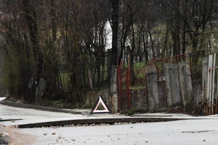U ulici Komatin se od velike količine vode podigao asfalt. Saobraćaj nije obustavljen, frekvencija automobila se odvija, ali je dodatno otežano zbog velike količine vode koja se slijeva.